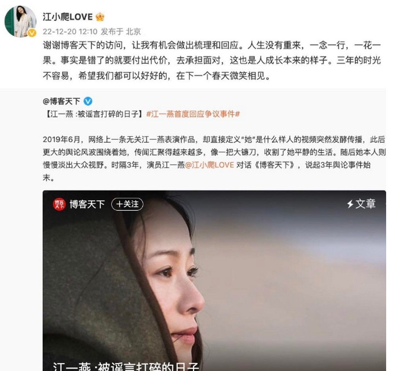 经官方核查属实后,相关部门介入处理,江一燕随后发布长文致歉,承认对奖项申报流程了解不清,愿意承担相应责任。